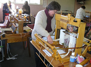 Greater interest in weaving and dyeing with natural dyestuffs caused us to acquire equipment for loan. Expansions in equipment and the library needed new premises. The Guild Headquarters has moved 10 times and is now housed in rooms at St Georges Church, Battery Point, Hobart. There is a good range of spinning and weaving equipment available for hire.